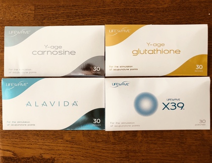日中はライフウェーブのX39パッチ(太陽光の一部の周波数帯をナノクリスタルに転写し、体内の銅ペプチドを増やすことで、結果的に幹細胞を活性化します。)を貼り、夜はグルタチオン(最強の抗酸化物質)、カルノシン(グルタチオンとの相乗効果で細胞の還元作用)、アラビダ(コラーゲンを増やし、体重減による顔のやつれやシワの予防)を貼りケアしました。