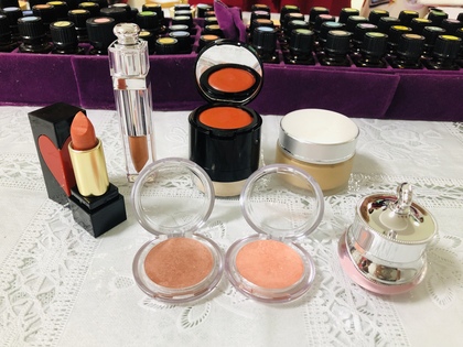 写真は、自作の口紅、グロス、チーク、アイシャドウ、クリームファンデーション、ポンポンファンデーションです。